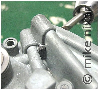 Again, when drilling on a carburetor, you absolutely must pay attention to what you're doing. Where is the tip of the tool ending up? Inevitably, it will nudge some important passages in the carburetor, as is the case with this Gold Wing carb. Take it slow and keep you eyes open.