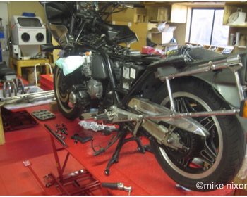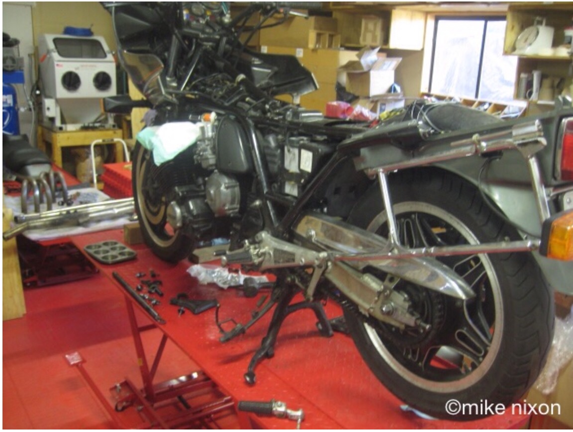 A project I took on a couple years ago. A 1981 CBX1000 the customer purchased online out of state and when picked up would barely run and almost didn't make it home. This is my shop. Starting on the bike. |
