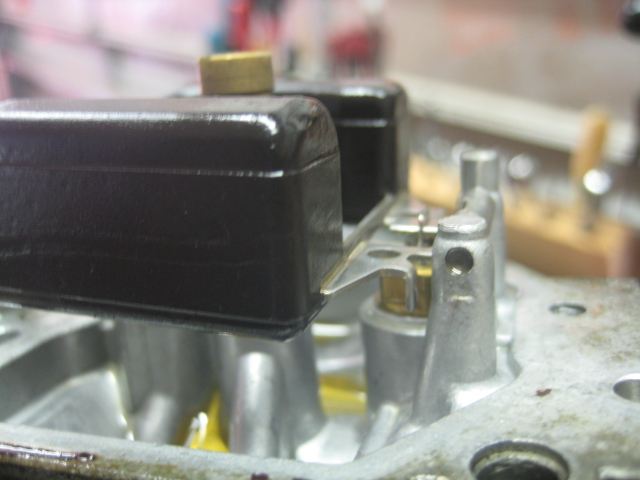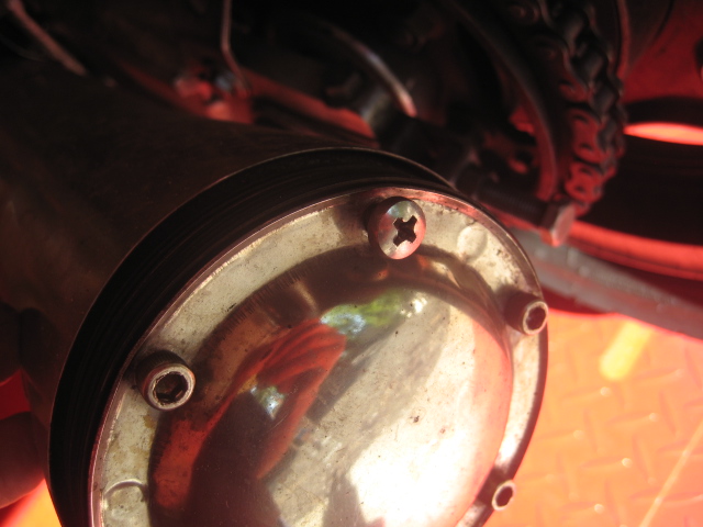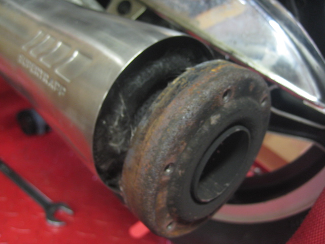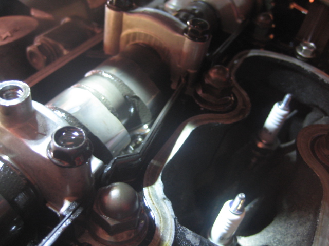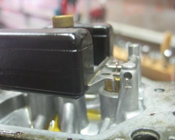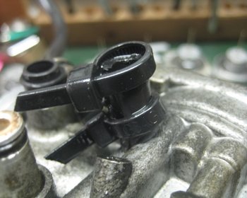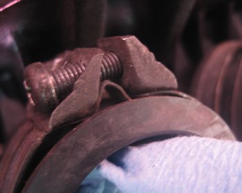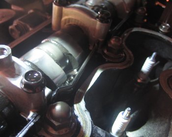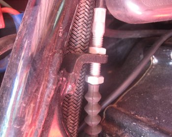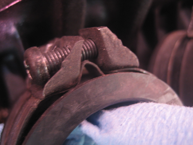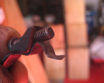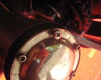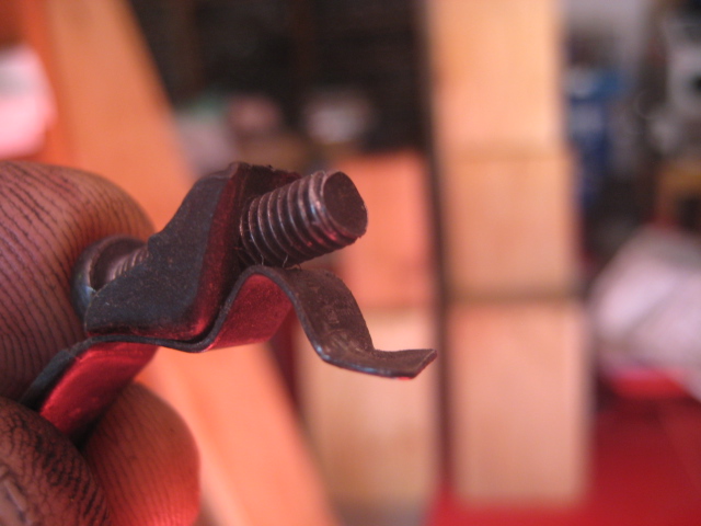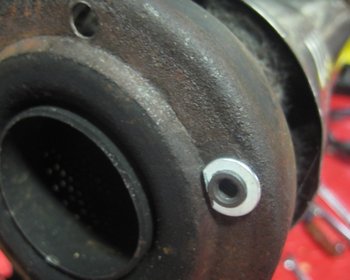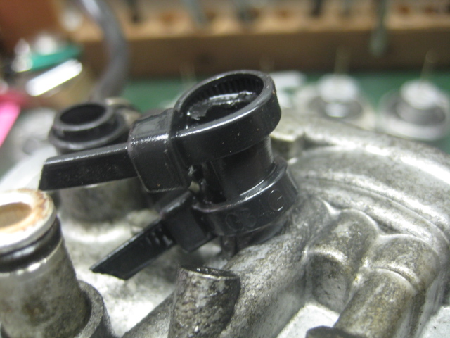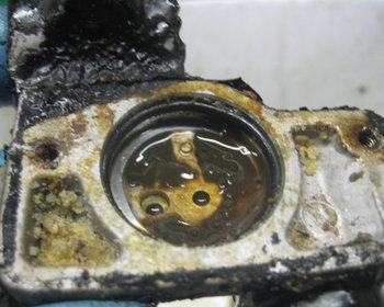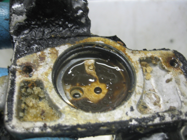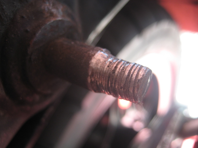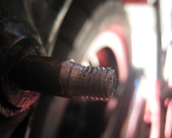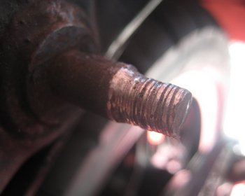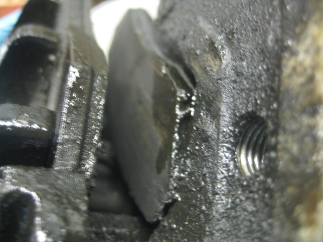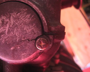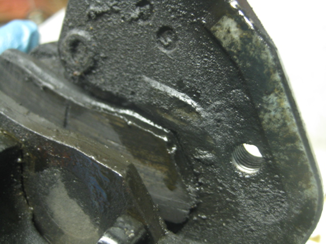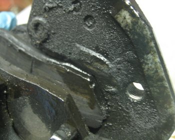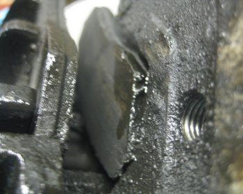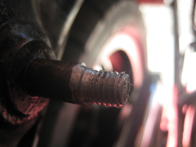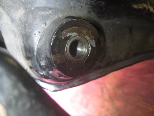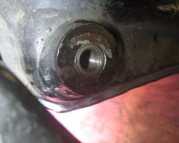 Engine mounting threads stripped in frame. This happens from not correctly aligning engine after it has been raised back up from removing the carburetors. |
