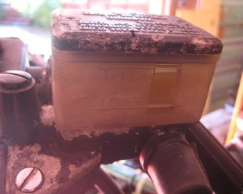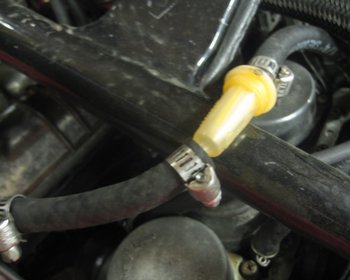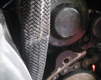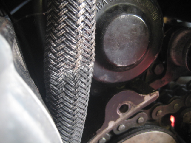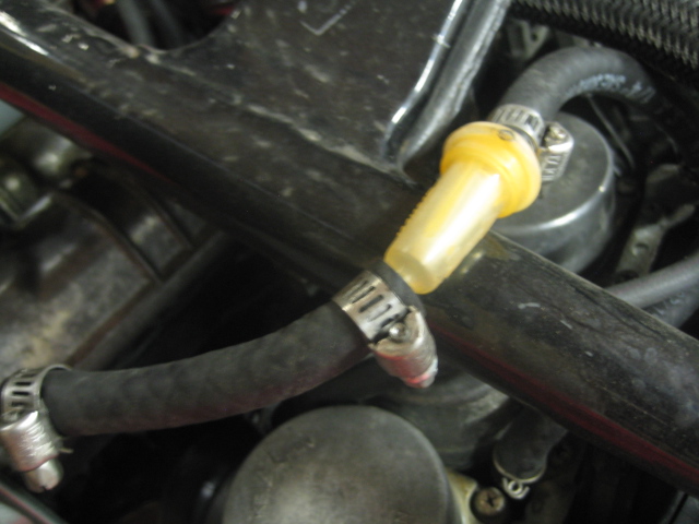 Speaking of the carburetors, note mis-routed fuel line and inappropriately small inline filter. |