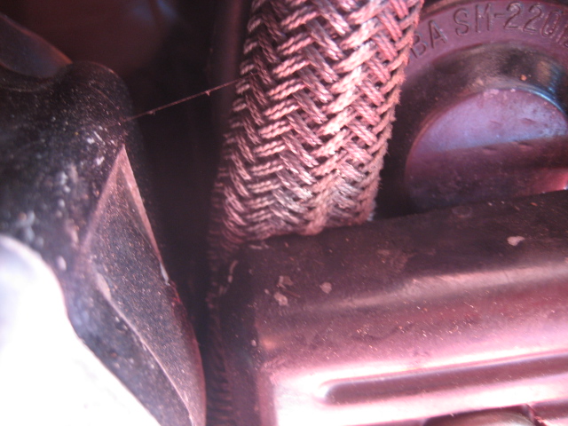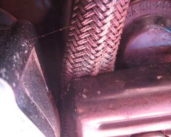 Pinched oil cooler hose. This happens from not installing the engine correctly. |