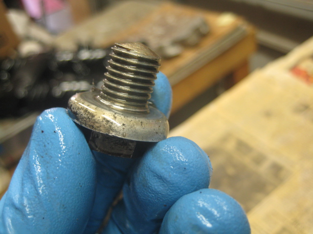 Mushroomed drain plug sealing washer. Also the plug itself is buggered up. |