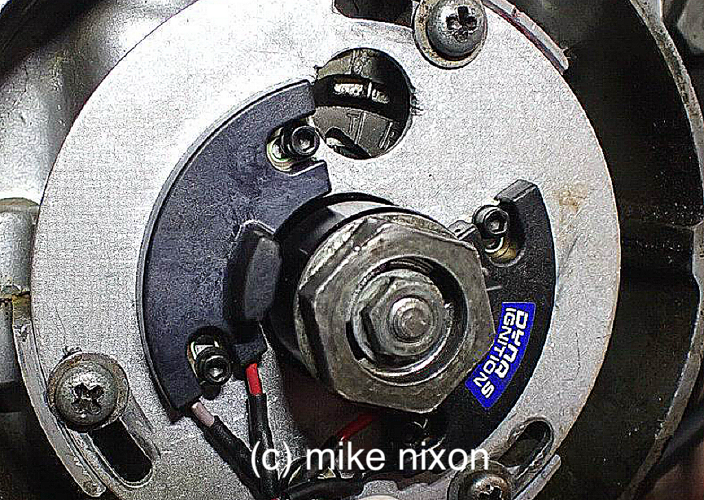 Speaking of the CBX1000, Dyna never made an ignition for this model. Those marketed for the CBX are in fact intended for the Kawasaki two-stroke triple. If you bolt a Dyna onto a CBX without modifying the backing plate, the result will be 10 degrees over-advanced ignition timing. This is not what you want on a hot-running engine like the CBX. The backing plate's slots must be widened to time the system properly.