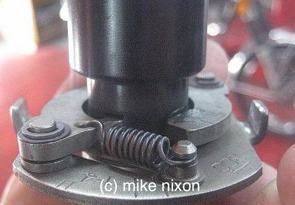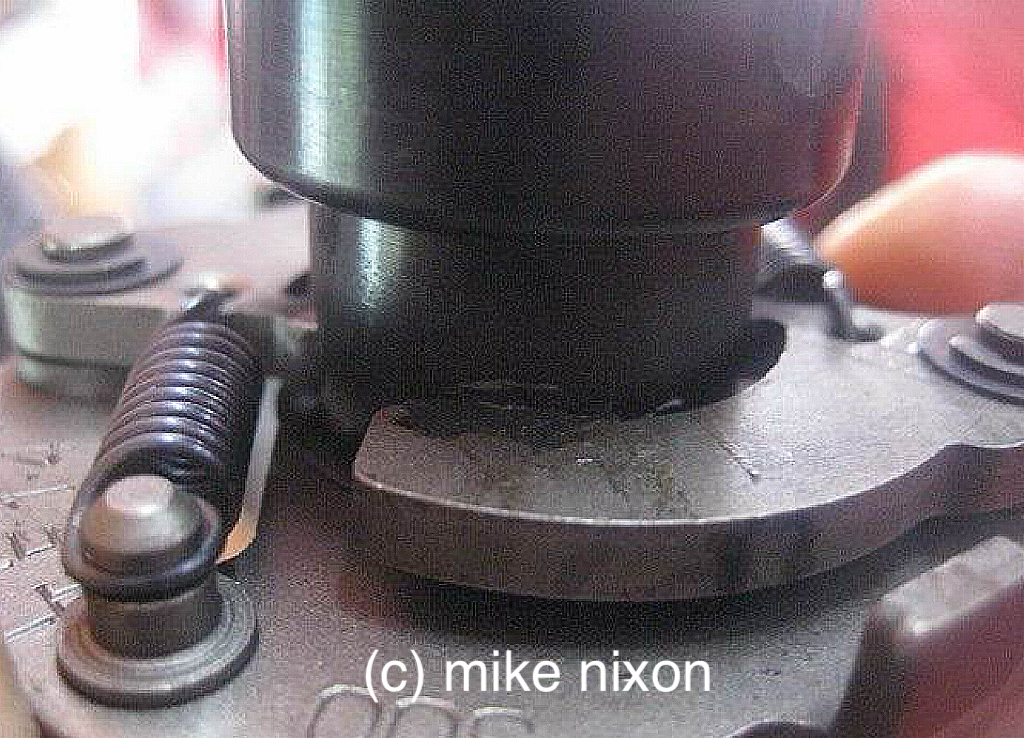 Back to the 750 issue. The thickness of the Dyna rotor kicks the advancer's flyweights out partly already deployed. Once timed, it will be discovered that this partial deployment uses up some of the factory's advance curve, withthe result that the ignition does not reach full advance. This is fairly easily corrected, but it requires that the advancer's stop ears be machined. Don't try to bend them. The advance assembly is hardened steel and the ears will break, they won't bend.