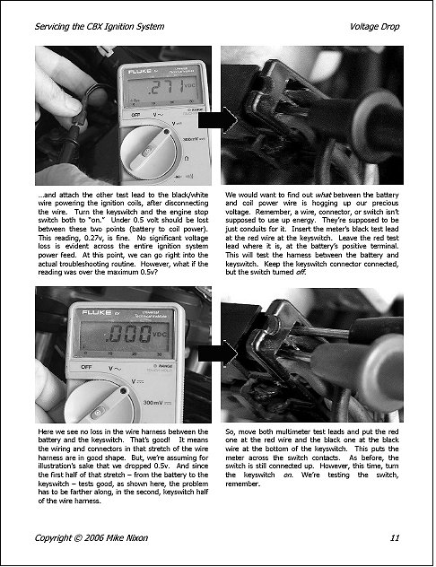 This booklet takes you step by step through finding the cause for a no-spark condition. It begins with common but very important and often overlooked visual and voltage checks, then proceeds through a simple three-step technique for accurately pinpointing the cause of the trouble. This is a simple ignition system, and most faults are not in the parts but in the connections. All the same, it helps to know how to trace those connections, as well as how best to test the parts. Not as technical as the charging booklet, but similarly systematic in approach. And like the others, this is an 8 1/2" by 11" booklet, runs to 25 pages, and contains scores of clear, to-the-point illustrations, most of them close-ups. Also included are line drawings for better understanding. And, all these steps are equally applicable to the identical ignition system on the early 80s DOHC CB750, CB900/1000 and CB1100 Honda fours, as well as the SOHC CB650, and later GL500 and GL650, and in fact, 95 percent of the Honda road bikes made between 1979 and 1990. All of these machines use the same electronic ignition system. For a book on "souping up" the point ignition on Honda SOHC Fours, try