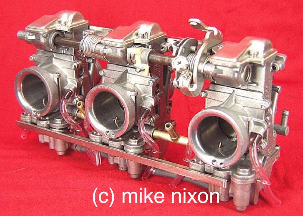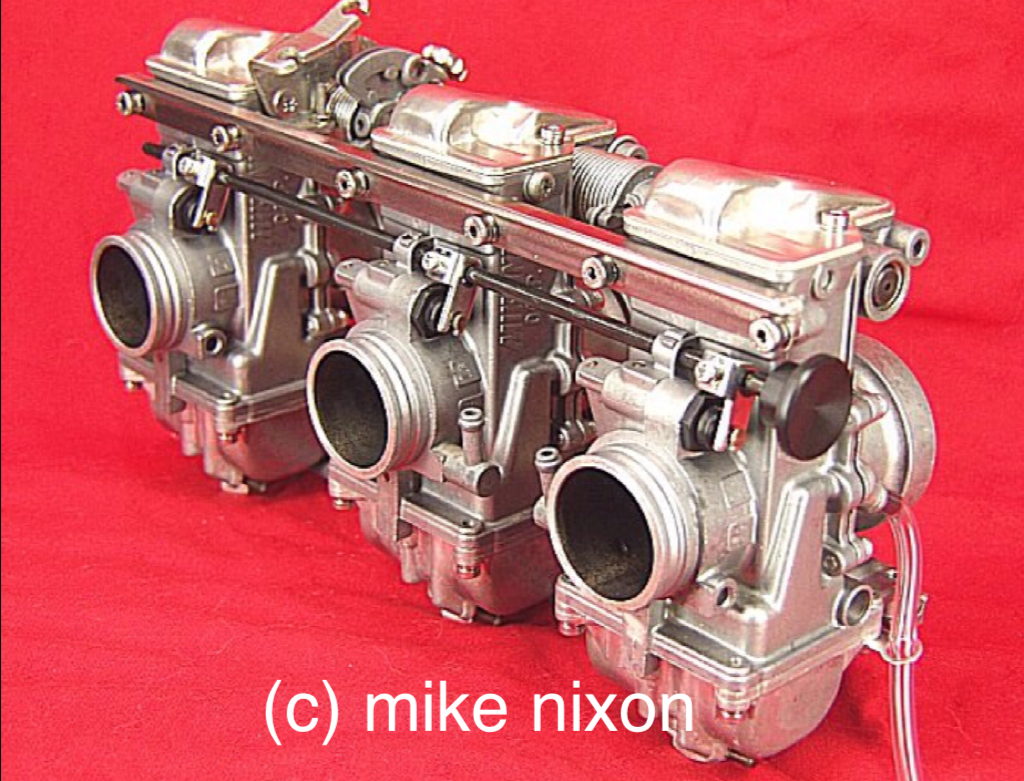 The world spec bike had fully mechanical carbs, with real flat slides. For a while, these carbs were enthusiastically sought after. Not any more. |