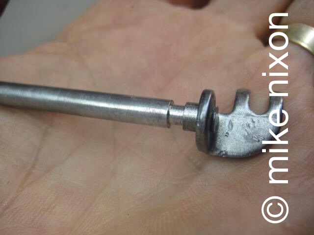 Here's another throttle shaft, this one from a GL1000. See what is wrong with it? It's twisted. Badly. This was inflicted on the part by some "mechanic." Do the other guys know how to, first, avoid this, and second, properly repair it? |
