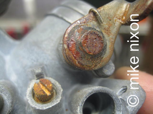 Well, let's start here, with the float valves. What you are lookimg at are badly corroded float valves from a carb kit. I have written elsewhere about these parts. |