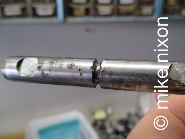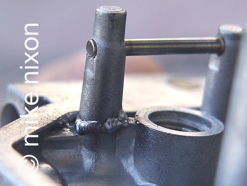 And how about this CB750 SOHC throttle shaft that someone tried to remove by pounding on it without first removing its locating pin? I see this often. Do most rebuilders know how to take this shaft out? Do many of them know how to repair this damage? No, not many. |