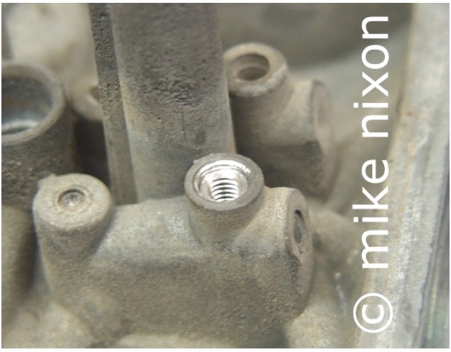 Most of the other guys are challenged by thread issues. This is a GL1000 carb body with new threads. This model carb needs thread repair pretty often. |