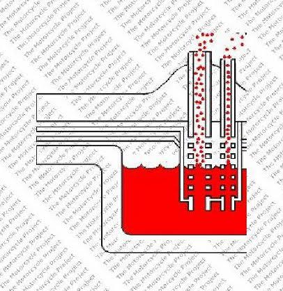 So the carburetor's circuits are modified by the manufacturer to have tiny lateral holes. These holes cause the fuel to froth as it rises, so that it is pre-atomized when it enters the engine. Combustion is improved. The more finely the fuel is atomized ("emulsified") the quicker it can be vaporized by the heat of the engine. |