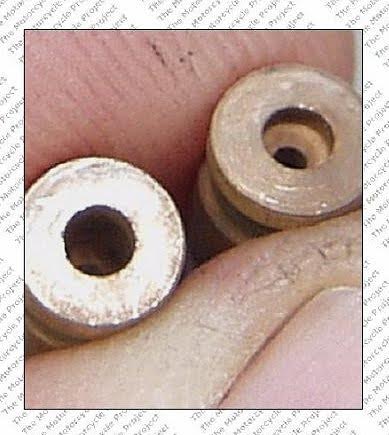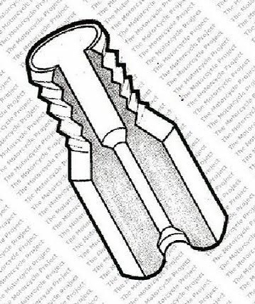This is easily observed in the jets in a Honda GL1000, but also in the smaller single-cam fours--the CB350/400F and the CB500/550 four. It is possible to install these push-in jets upsdide-down, and the theory is that the fuel flow through the jet will then be altered, resulting in a change in air/fuel mixture. |