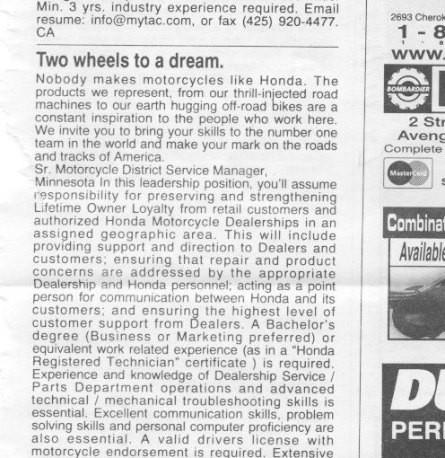 I disagree with a lot that is found on forums, and I take particular exception to this sentiment. I am coming to see that the two are related, this general disagreement with the Internet majority and the irritation at being thought of as inferior. I have worked with guys that should have been scientists, engineers, professors at least. Some did go on to "professional" careers. Most of them were far better diagnosticians than I, much better. I was in awe of them, and still am. I once had a tech working for me who could remove, disassable, rebuild, true and reinstall in the crankcases a KTM crankshaft in less than 30 minutes! I worked alongside another fellow who could crouch behind a BMW boxer twin and tell which carburetor needed its idle raised, and another guy who the service manager would call away from his work for a minute to just listen to a Gold Wing and the service manager would then write up the service ticket from his comments. I remember a fella in the stall next to mine in my second year as a mechanic whose voice I hardly knew because he rarely said a word, but I also remember he exuded physician-like confidence, many of his tools were custom-made, and more importantly, he never had a comeback. Not once in the time I knew him. And then there was Willy, a quirky fellow to whom sportbike riders flocked just to have him ride their bikes and tell them what they needed to do to them. These few real-life examples don't even begin to tell the story, because almost all of the guys I worked with were stars, people whom, were they in any other field, would have been recognized and financially rewarded for their efforts. But because of the grime under their fingernails, their brilliance was overlooked. Because their speech wasn't university-toned, they were looked down upon. However, there is a quality about career mechanics, a uniquely awesome and brilliant trait, that is hard to put into words. But let me try.