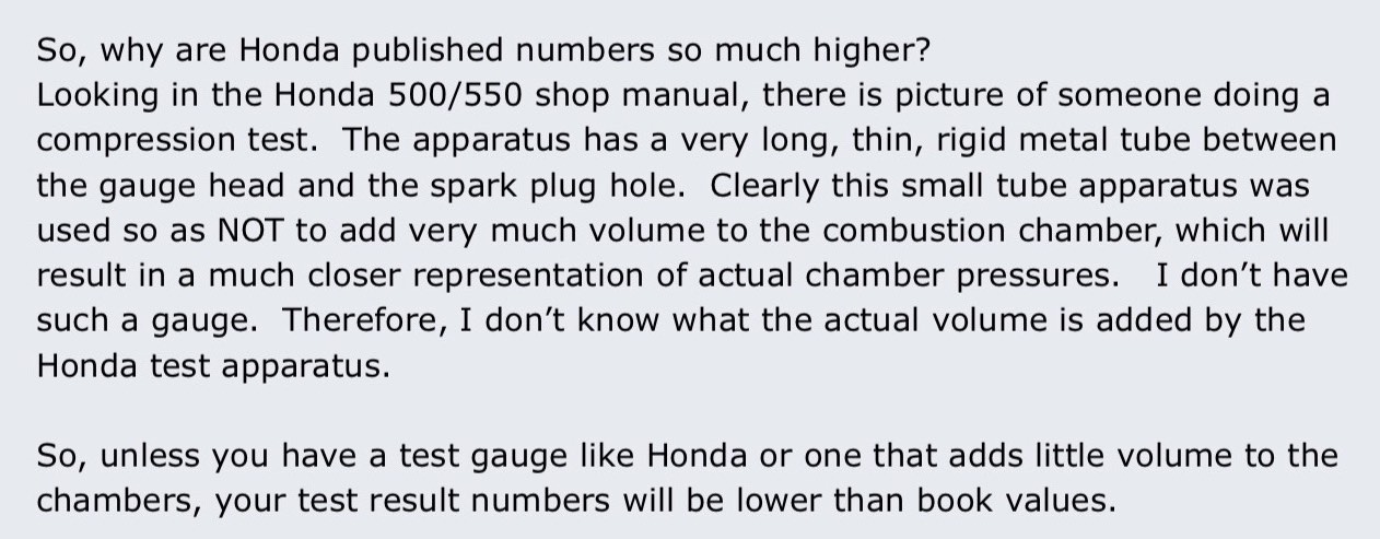 This is do messed up it's hard to know where to begin. Vintage Honda SOHC fours read exactly 170 psi cylinder compression at sea level when they are rebuilt using quality, factory or factory-like parts and professional technique. |