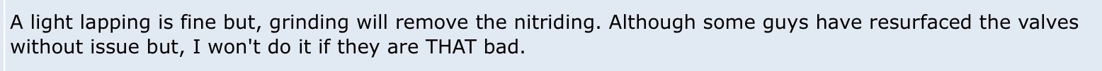 No stock Honda valve made before the mid 1980s can be refaced. There is a bulletin on this. And it has nothing to do with a cam's nitriding, or the procedure known as valve lapping. |