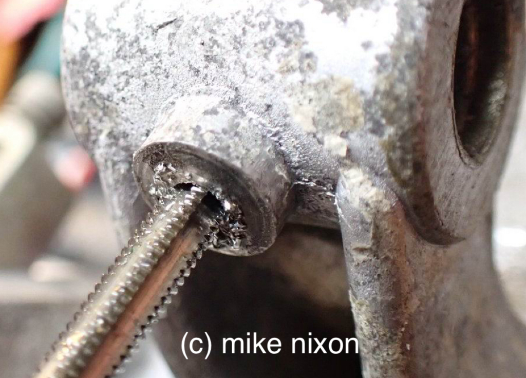 Then the hole is drilled and tapped for a suitably-sized screw. |